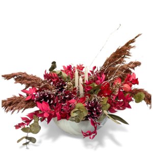Ramo Seco Natalício – Tons de Vermelho e Dourado