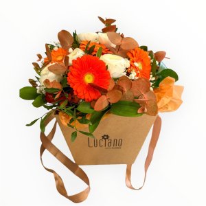 Ramo em Caixa – Tons de Laranja e Branco