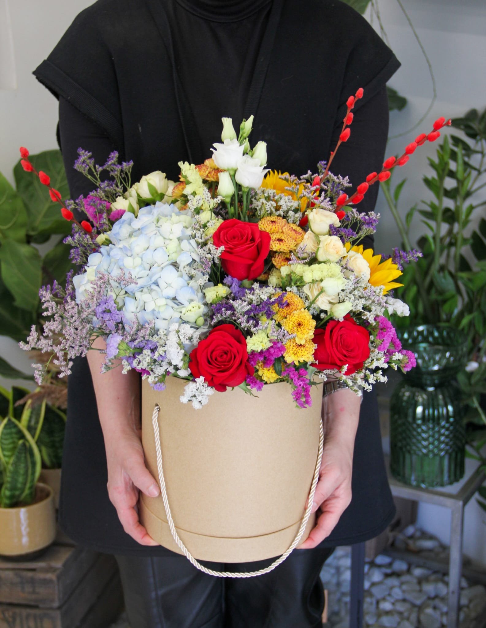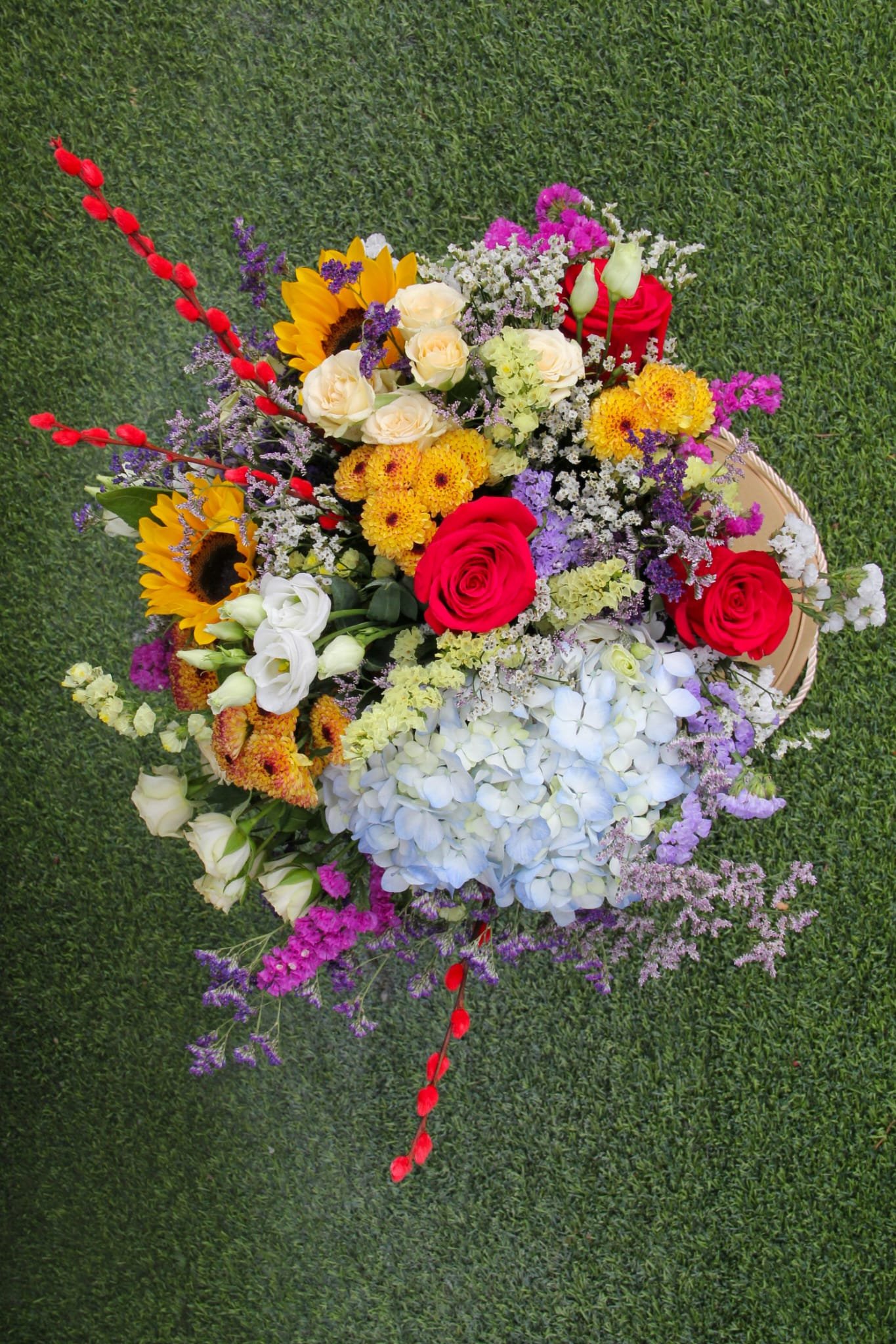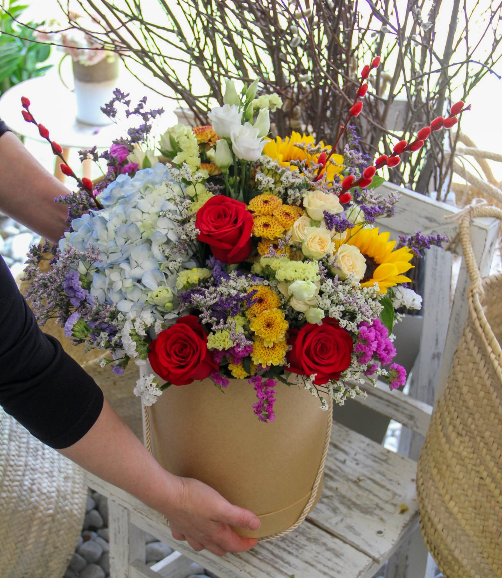 Se a ideia é impressionar, este arranjo é a escolha perfeita. O Arranjo Grande Surpresa é uma explosão de cores, texturas e flores selecionadas com carinho para marcar momentos especiais com elegância e exuberância.