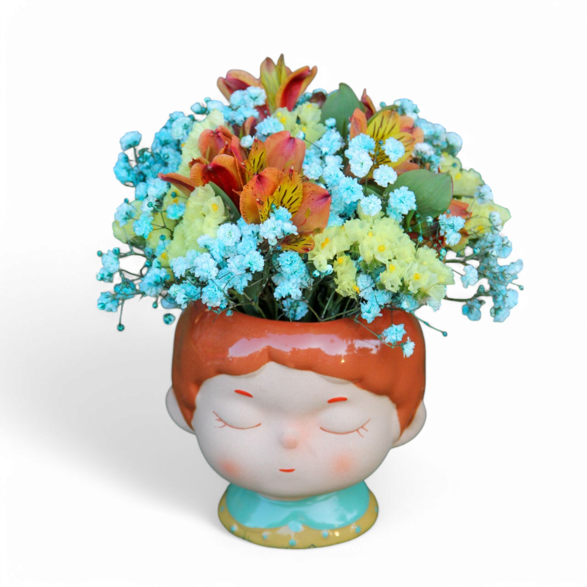 Jarra Menininhas – Arranjos Floral em Tons de Azul, Amarelo e Laranja