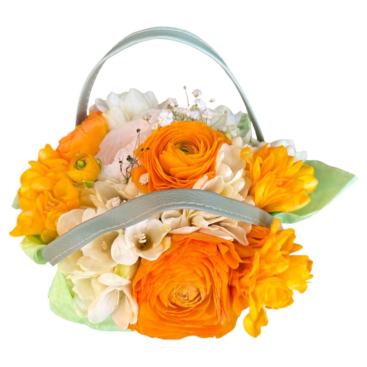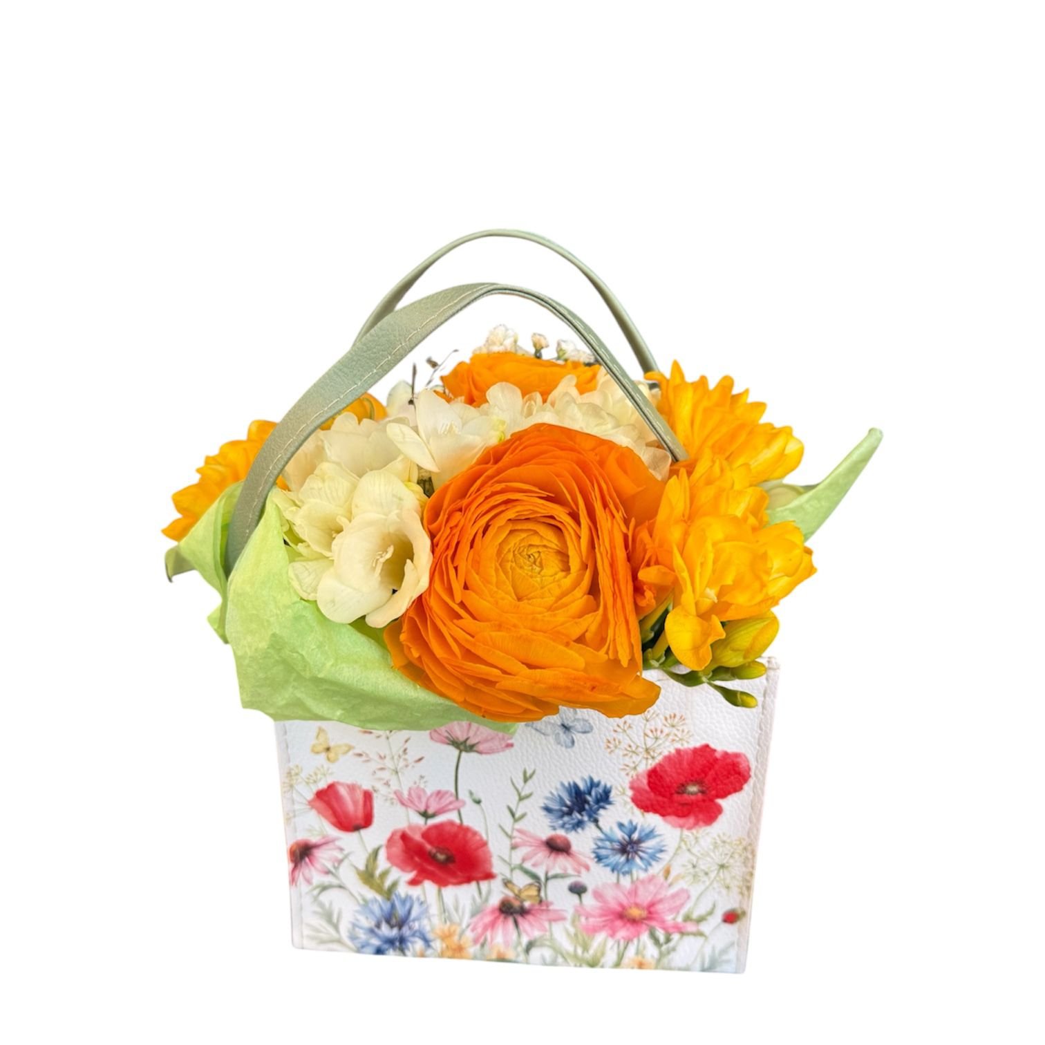Linda malinha com flores em tons de amarelo e branco