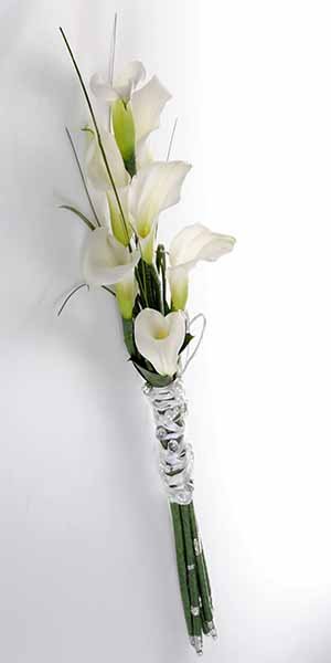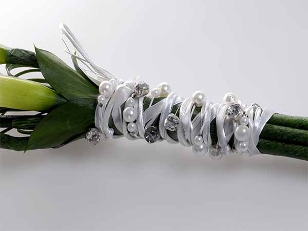 Ramo de noiva composto por Jarros, Beargrass e várias verduras.