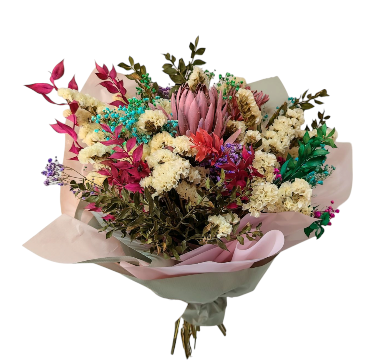 Ramo seco colorido. Criação única de nossas floristas. Os ramos secos são uma escolha sofisticada e rigorosa para apresentar no Dia da Mulher . As flores mantêm sua beleza por muito mais tempo, simbolizando força, resistência e elegância – qualidades que refletem perfeitamente a essência feminina. Além disso, são versáteis na decoração e trazem um toque natural e charmoso a qualquer ambiente.