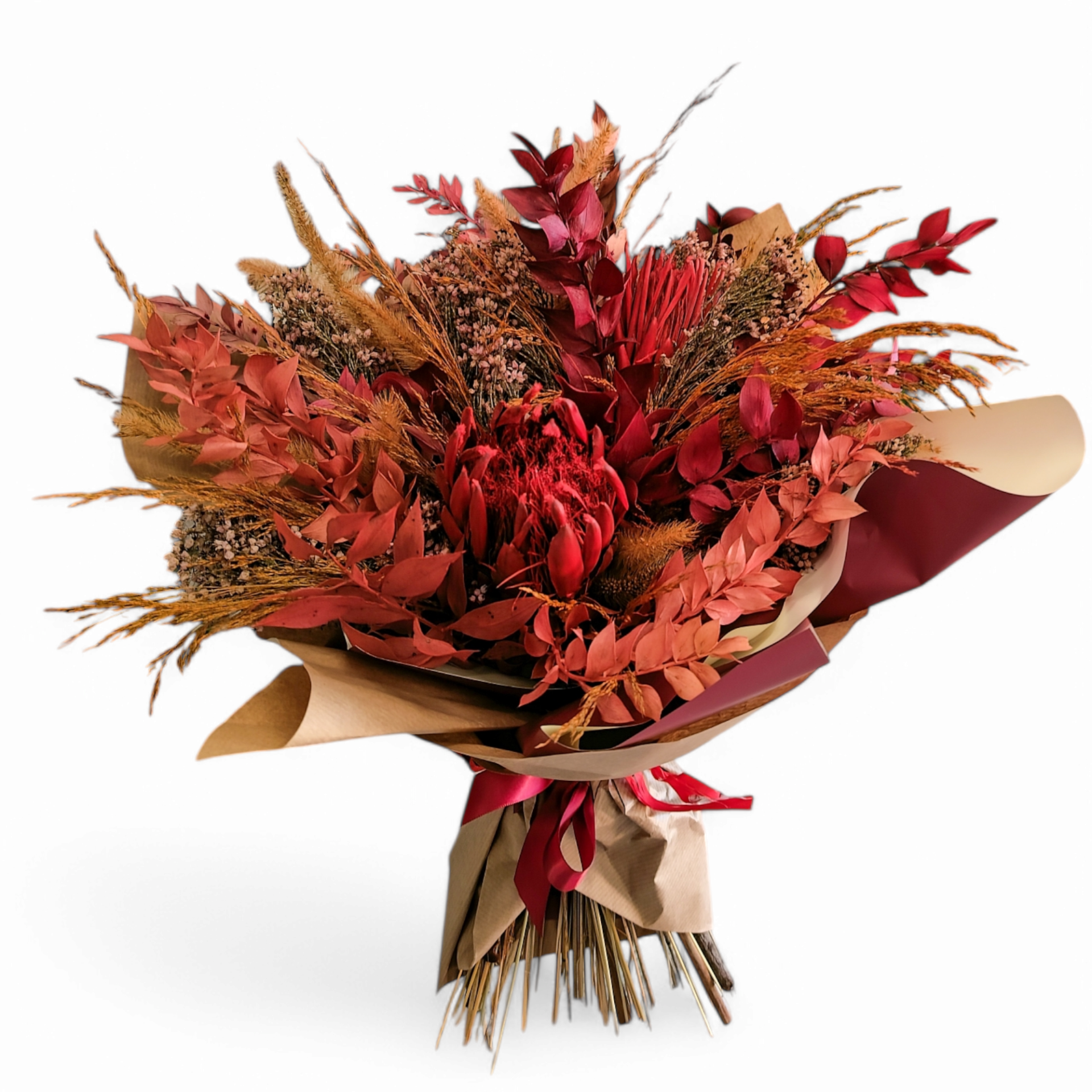 Adicione um toque de elegância natural ao seu espaço com nossos ramos secos, cuidadosamente elaborados pelas mãos talentosas de nossas floristas.